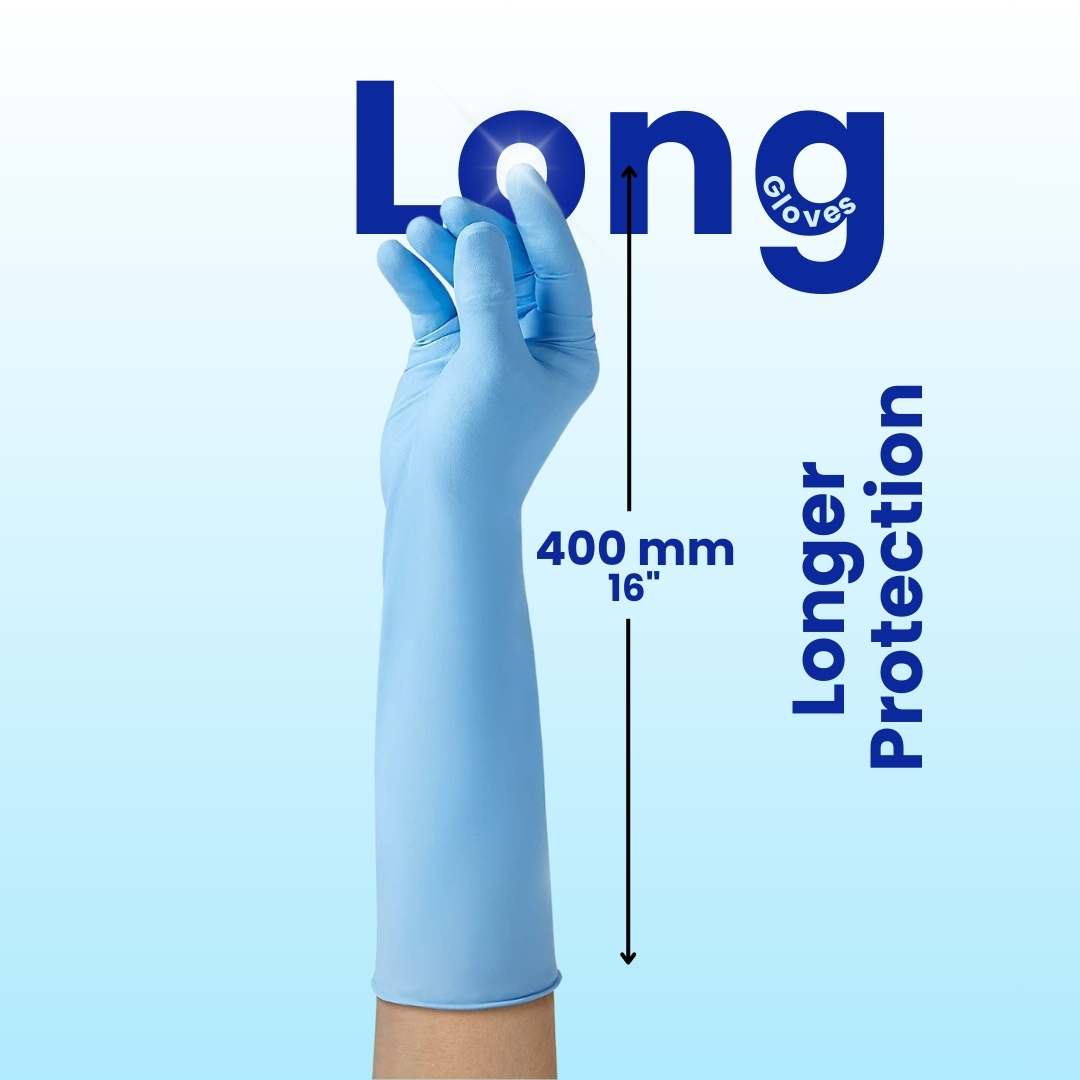 ELBOW-LENGTH FOREARM PROTECTION: Featuring a massive 16-inch (400mm) length, these gloves provide extended coverage up to the elbow. This is essential for shielding your arms from splashes, hazardous chemicals, and contaminants in deep-tank or high-risk environments.