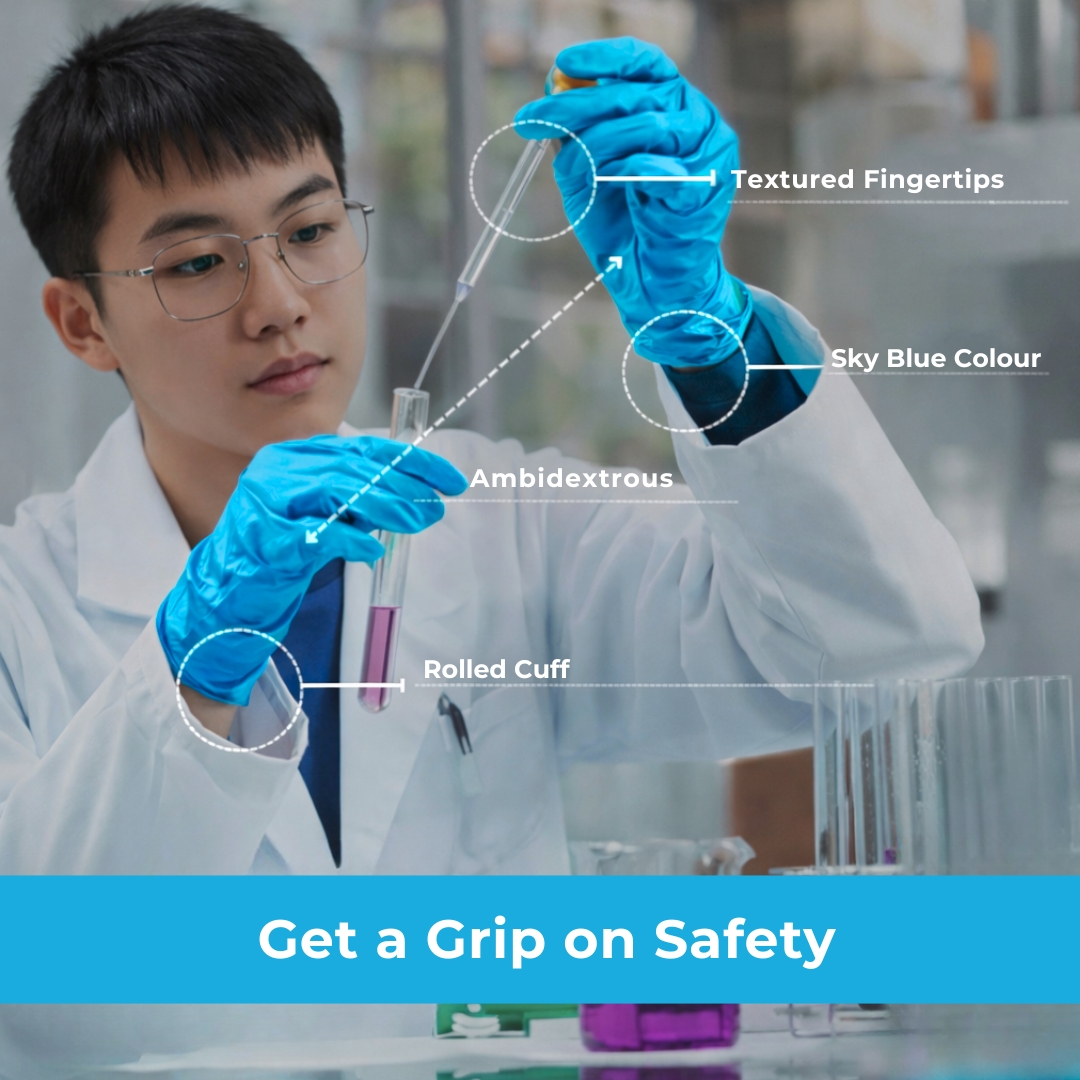 TEXTURED PRECISION GRIP: Designed with a micro-textured finish on the fingertips, these gloves ensure a secure and steady grip on small tools and glass slides, even when working in wet or oily conditions.